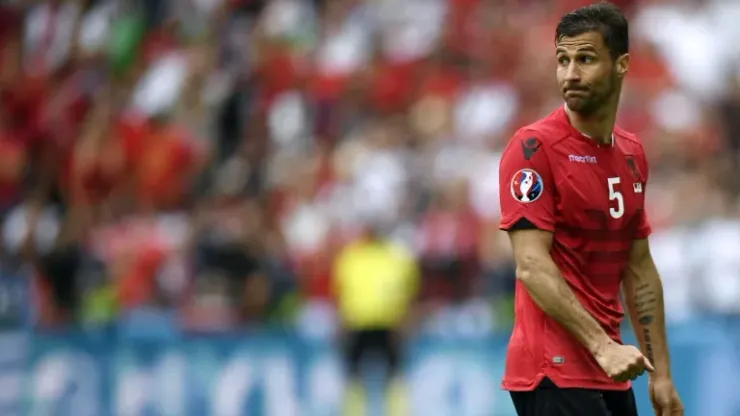 Albania were losing 1-0 when they lost their captain who will miss the next Group A match against France.