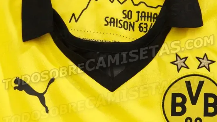 Dortmund, who are becoming one of the more fashionable sides on the pitch in Europe, will become more fashionable off it with their new shirt designed by Puma. The most striking feature is the chart on the inside of the shirt that shows Dortmund’s progress through the ranks of German football since the launch of the Bundesliga in 1963.