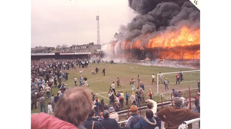 The day was supposed to be one of celebration for Bradford who had just won the Third Division trophy. However as the game against Lincoln progressed, a fire began just before half-time in the stand that ran alongside the pitch. As you can see in the video above, the small fire quickly consumed the entire stand. Spectators in the stand ran on to the pitch for their safety. While the stand continued to burn and become engulfed in flames, some of the City supporters sang songs and celebrated on the pitch.