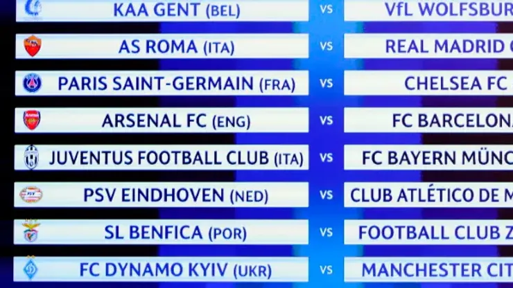 The draw, carried out at UEFA headquarters in Nyon, also saw record 10-time winners Real Madrid matched up against Roma, while Manchester City will meet Ukrainians Dynamo Kiev for a place in the quarterfinals.