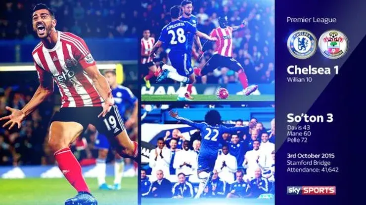 Southampton equalised after Ramires was booked for a foul on Mane, and Fonte played the ball long to Pelle, with his back to goal.