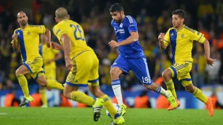 Diego Costa scored his first Champions League goal for Chelsea as the beleaguered Barclays Premier League champions claimed a much-needed victory by thrashing Maccabi Tel Aviv at Stamford Bridge.