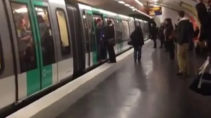 A shocking video has gone viral showing a portion of Chelsea supporters stopping an unidentified black man from boarding a Paris train.