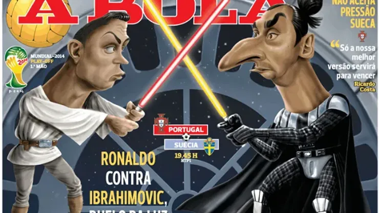 Cristiano Ronaldo and Zlatan Ibrahimovic are featured as Luke Skywalker and Darth Vader from Star Wars on the cover of a Portuguese newspaper today in the lead-up to the battle between Portugal and Sweden in the first leg of the World Cup playoff.