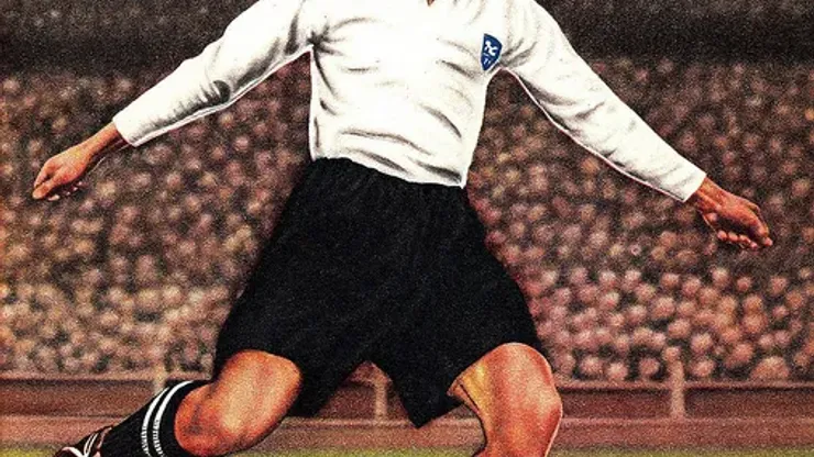 One of the most iconic images of Tom Finney is the “splash,” which has been immortalized in a statue outside Preston’s stadium. The image is from a waterlogged match at Stamford Bridge in 1956 where Finney skidded on the turf.