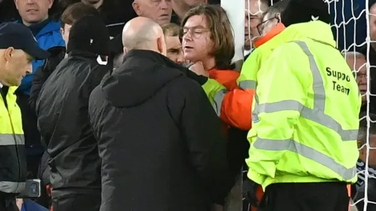 Liverpool (AFP) – Everton’s crucial clash in the battle for Premier League survival against Newcastle was temporarily halted on Thursday by a protestor chaining himself to one of the goalposts by the neck.
