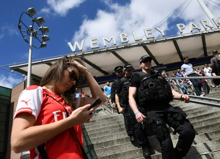 Black-clad police officers carrying large guns could be seen outside Wembley Park underground station in northwest London, while black armoured police trucks were parked discreetly beside the roads leading to the stadium.