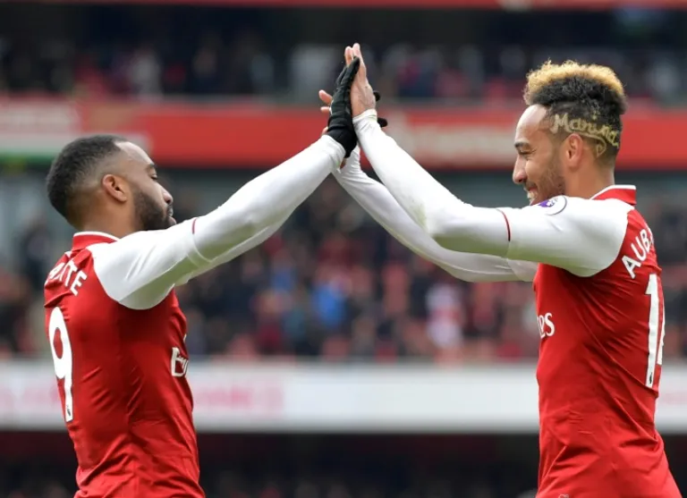 Pierre-Emerick Aubameyang scored twice on Sunday before passing up the chance of a Premier League hat-trick by allowing substitute Alexandre Lacazette to mark his return from injury with a goal from the penalty spot as Arsenal sealed a 3-0 victory at the Emirates Stadium.