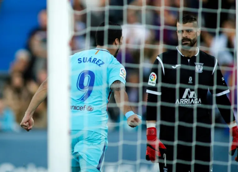Suarez was booked for impeding Leganes goalkeeper Ivan Cuellar clearing the ball early in the second half, but he got his revenge by celebrating in front of Cuellar after netting his second goal of the game as the Uruguayan ended a five-game goal drought.