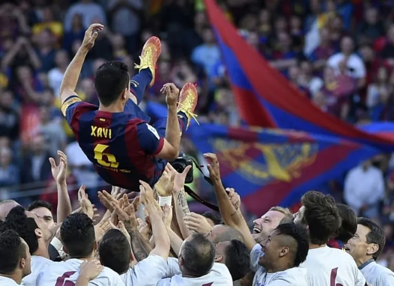 After his last game playing for Barcelona in 2015, Xavi stood on the pitch at the Olympic Stadium in Berlin with his left hand on the right ear of the European Cup.