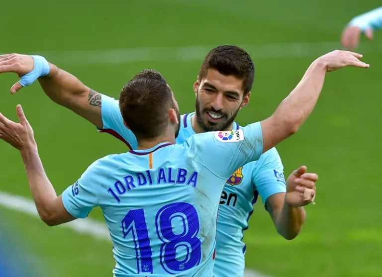 Madrid (AFP) – Luis Suarez and Jordi Alba were on target as Barcelona saw off Eibar 2-0 on Saturday to continue their unbeaten record in La Liga and extend their lead at the top of the table.