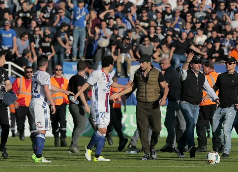 Bastia said that the “Jojo-Petrignani stand” — from which the pitch invasions were launched before Sunday’s game and again at half time — would undergo a security overhaul before its reopening to maximise safety at the Armand-Cesari stadium.