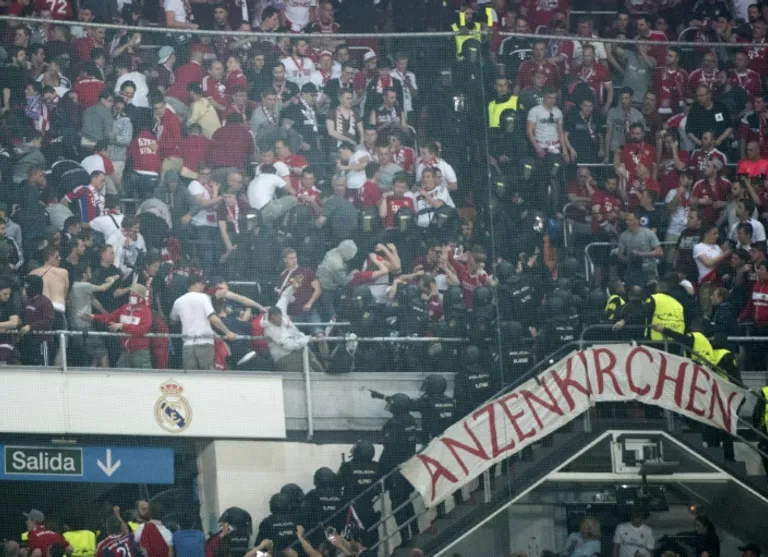 Eye-witnesses said that riot police stormed the visitors’ section of the ground to remove a banner, which led to Bayern fans attacking officers, who replied in kind.