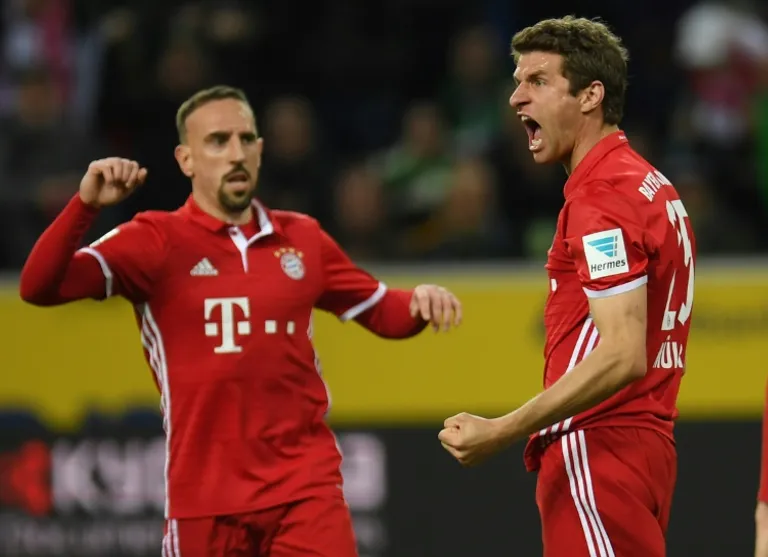 Bayern created numerous chances before Mueller’s breakthrough as Arjen Robben hit the post in the first-half and Robert Lewandowski forced Gladbach goalkeeper Yann Sommer into a point-blank save with a header.