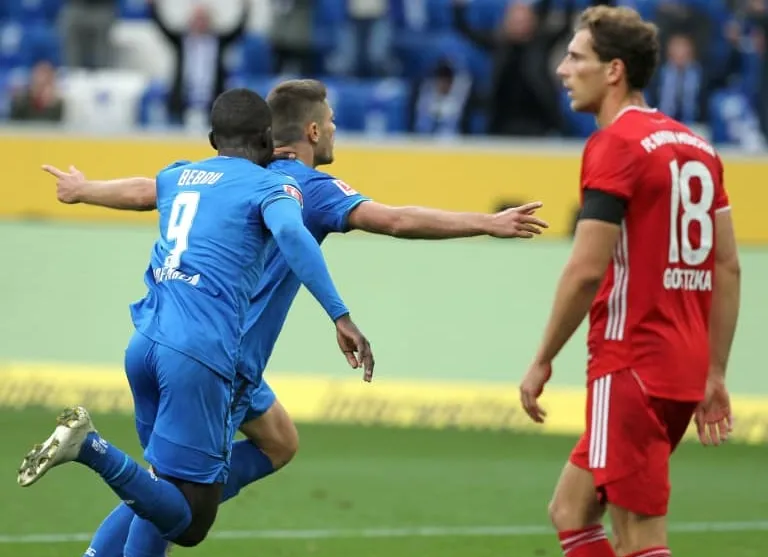 The shock win left Hoffenheim top of the table while defending champions Bayern are in the unusual position of seventh after two matches.
