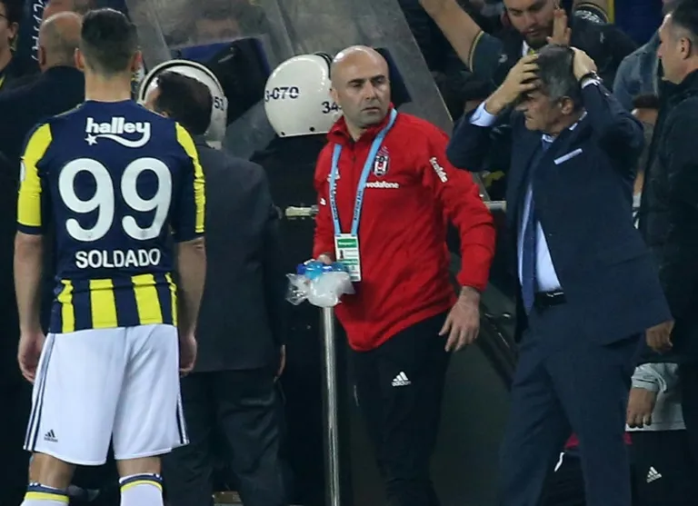 The incident happened after a row erupted between Fenerbahce fans and Besiktas players on the bench.
