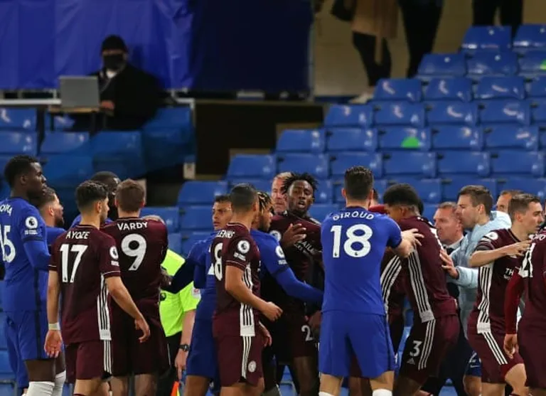 A tackle by Foxes full-back Ricardo Pereira on Ben Chilwell sparked a melee between players and staff from both sides. The clubs were charged with a breach of FA rules last month.