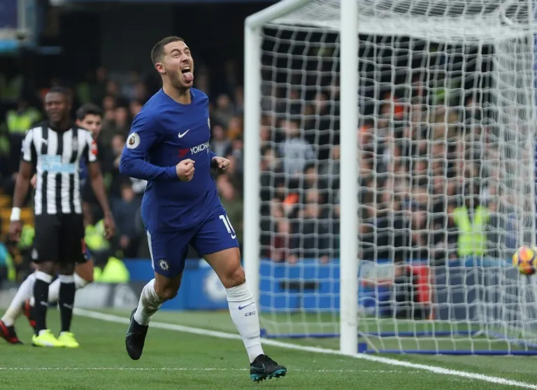 London (AFP) – Eden Hazard sparkled as Chelsea swept Newcastle aside on Saturday to cling on to the coattails of runaway leaders Manchester City but 10-man Tottenham slipped further off the pace with a costly draw at Watford.