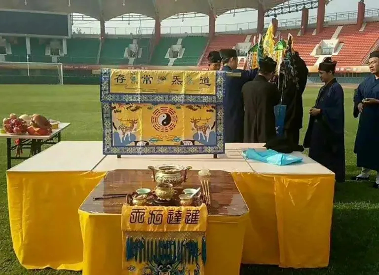 The Paper, a state-run newspaper based in Shanghai, carried a picture of the ritual showing a desk on the pitch covered with a yellow cloth on the eve of the game.