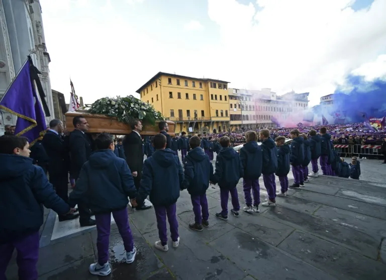 Daniele De Rossi, Mario Balotelli and Francesco Totti were among Italy players past and present who came to pay their respects and the entire Fiorentina team, dressed in sober dark suits and ties, attended.