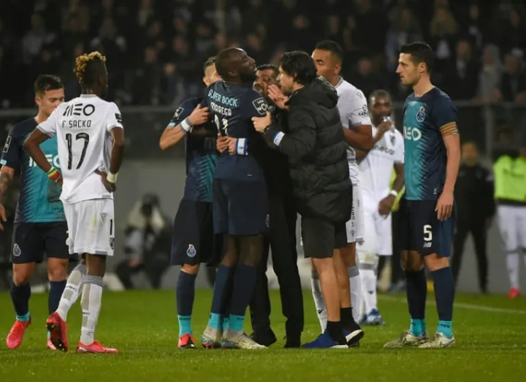 In the 71st minute of the match, Marega signalled to the bench he was leaving the pitch in protest even though teammates, Porto coach Sergio Conceicao and Vitoria players tried to get him to stay on the pitch.