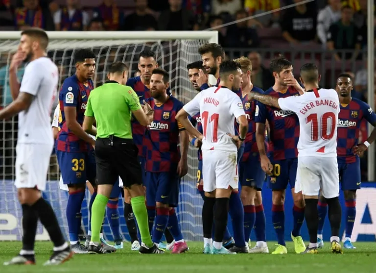 Dembele was sent off near the end of Barca’s 4-0 win over Sevilla on Sunday for saying to referee Mateu Lahoz: “very bad, very bad”.