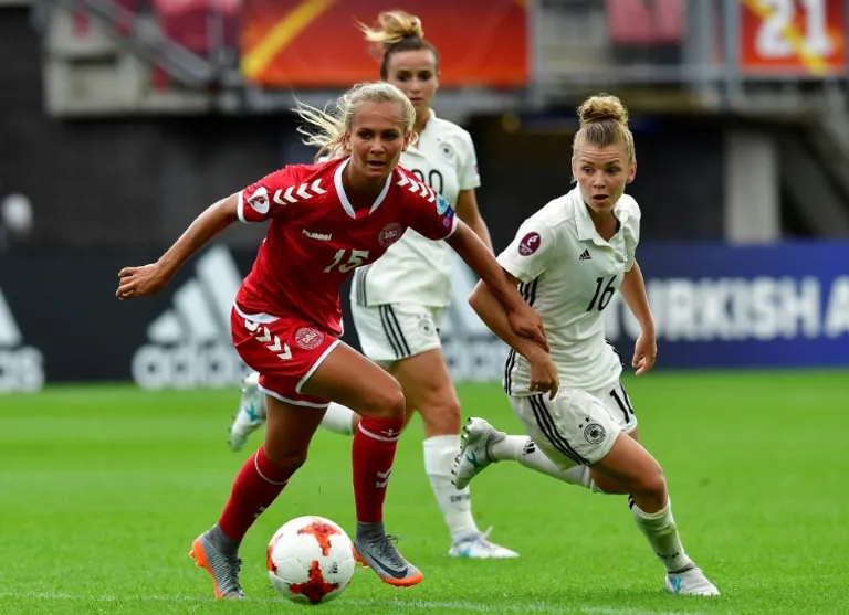 Germany were out of the blocks fast with Isabel Kerschowski drawing first blood on three minutes with massive help from Danish keeper Stina Petersen who palmed her shot from just outside the box into the goal.