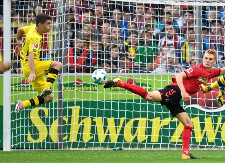 Dortmund’s star-studded attack, boasting last season’s top-scorer Pierre-Emerick Aubameyang, was denied by a stubborn home side who played for an hour with 10 men at their Schwarzwald Stadion.