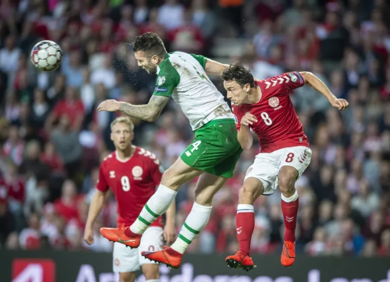 Ireland almost snatched the lead when Conor Hourihane’s free-kick was headed goalwards by Duffy, only for Denmark keeper Kasper Schmeichel to save on the goalline.