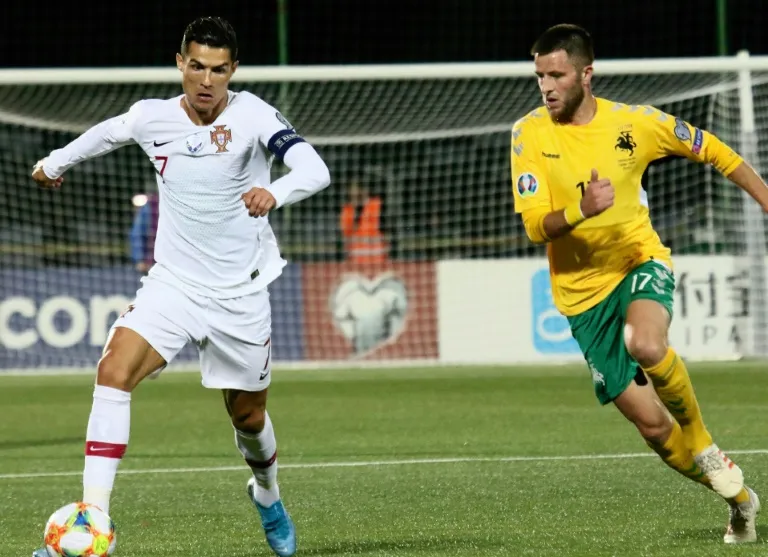 For Ronaldo it was a second hat-trick in three internationals. The victory over Lithuania, 130th in the world rankings, kept brought Portugal five points behind Ukraine at the top of Group B, with a game in hand.