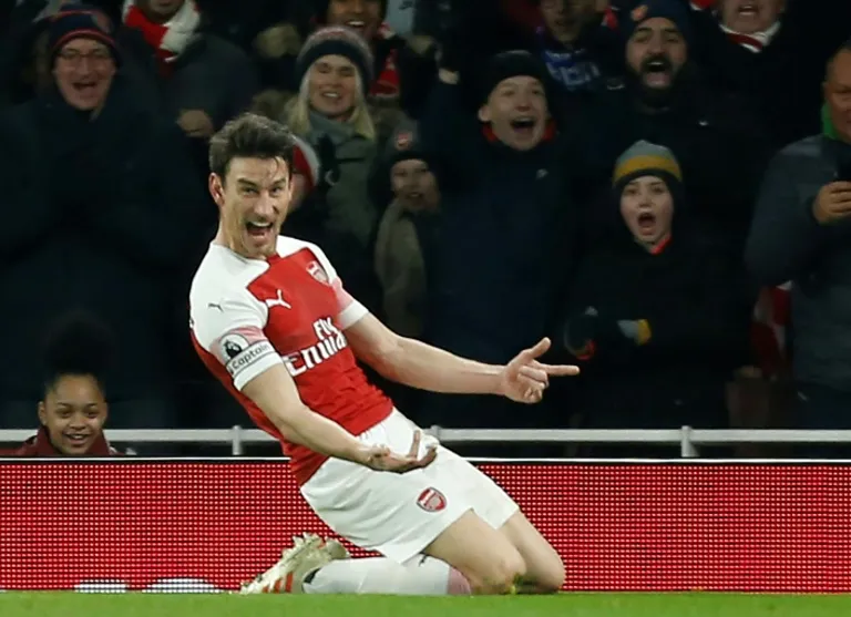 Sead Kolasinac headed down Lucas Torreira’s free-kick into the path of Sokratis Papastathopoulos and his cross picked out the unmarked Koscielny.
