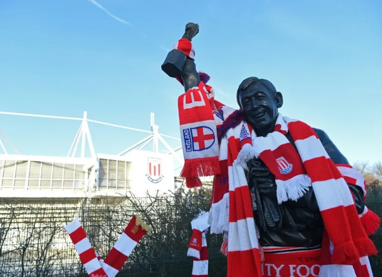 A statue erected in Banks’s honour, holding the Jules Rimet trophy aloft, was decorated with several Stoke and England scarves.