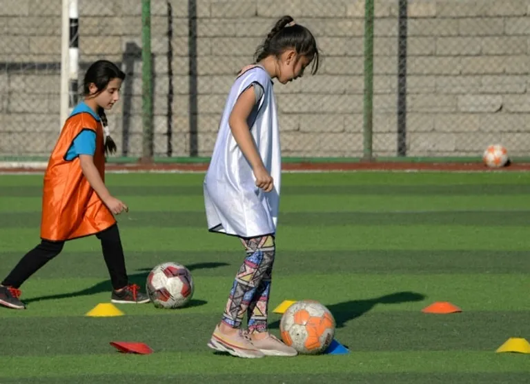 Dressed in brightly coloured bibs, the girls do stretching exercises on the freshly laid pitch before Yusef Chaba blows a whistle for the start of practice.
