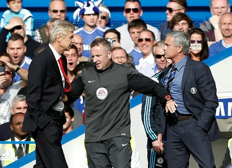 — Wenger has had fiery relationships with Jose Mourinho and Alex Ferguson, eschewing the tradition of having a drink with his opposite number after the match. Here he reacts furiously to Mourinho remarking in 2005 that Wenger was a “voyeur” for constantly talking about Chelsea.