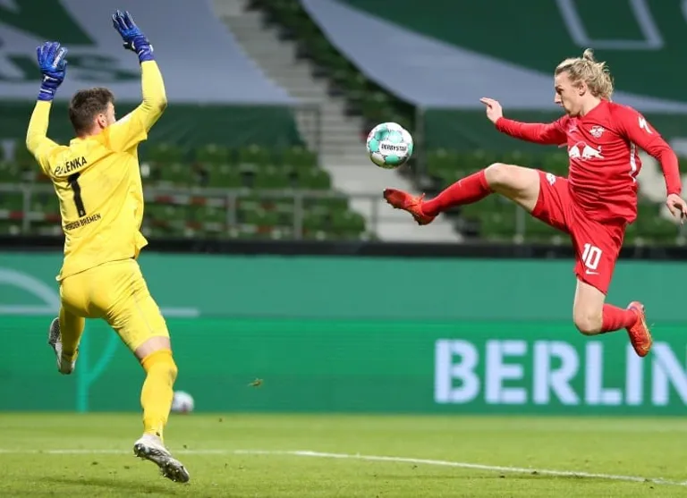 Werder goalkeeper Jiri Pavlenka pulled off a superb save to deny Leipzig striker Alexander Sorloth with four minutes gone.