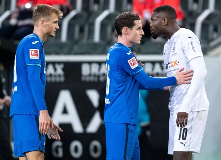 With Gladbach down to 10 men, Hoffenheim scored a late goal and won 2-1.