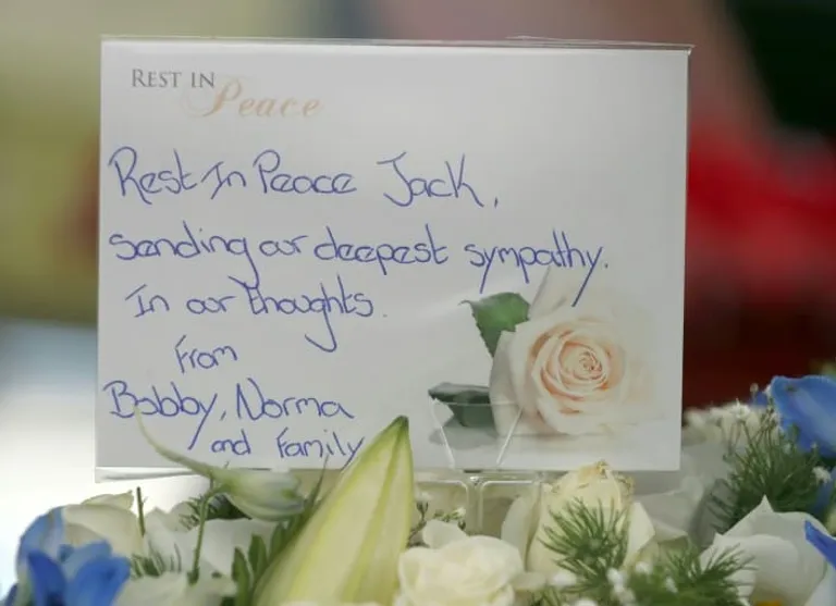 A floral tribute from Jack’s younger brother Bobby, 82, who was in the 1966 World Cup-winning team alongside Jack, was placed next to the coffin.