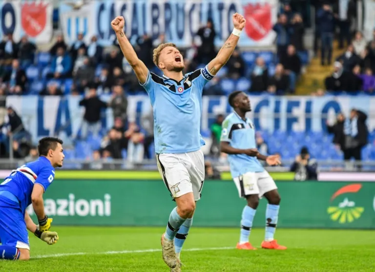 Milan (AFP) – Ciro Immobile scored a hat-trick as Lazio thrashed ten-man Sampdoria 5-1 on Saturday to consolidate third place in Serie A and keep the pressure on leaders Juventus and Inter Milan.