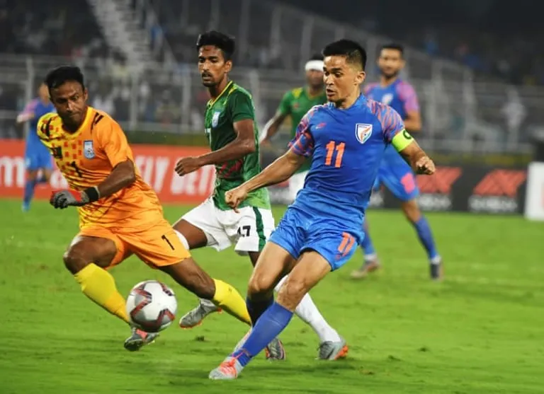 The 36-year-old striker added a second in injury time, taking his total to 74 goals for India, who are already out of the race to qualify for the World Cup but can make it to the Asian Cup in China.
