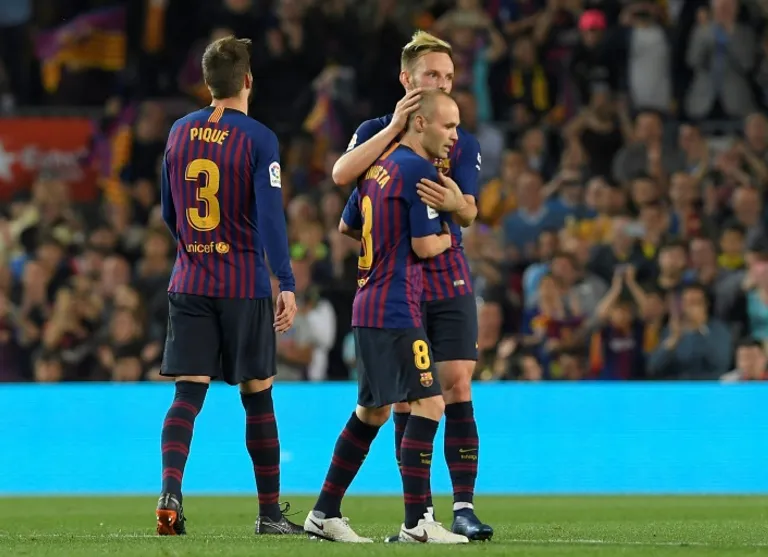 Iniesta, with a tear in his eye, walked off to a standing ovation from the Camp Nou when substituted in the second half, having unfastened his captain’s armband and handed it to Lionel Messi.