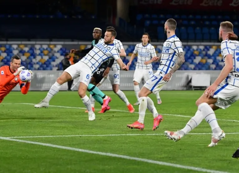 Napoli threatened a second with Fabian Ruiz missing a chance to connect with a Giovanni Di Lorenzo cross after 63 minutes and Inter loanee Matteo Politano rattling the crossbar with ten minutes to go.