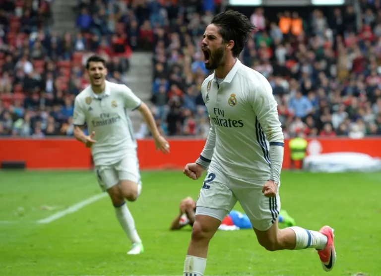Madrid (AFP) – Isco struck in stoppage time to send Real Madrid six points clear of Barcelona at the top of La Liga after twice coming from behind to beat Sporting Gijon 3-2 on Saturday.