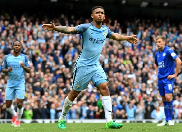 Jesus scored the penalty that put City two goals in front after David Silva had given them the lead with an effort that Leicester believed should have been disallowed for offside.