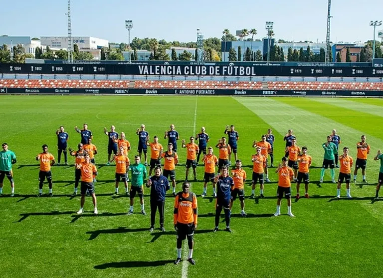 The Valencia squad lined up behind Diakhaby at their training ground in a public display of support.