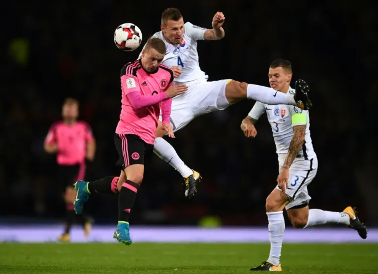 Midway through the first half Martin Dubravka in the Slovakia goal produced an eye-catching save to keep out a headed effort from Christophe Berra but the key moment came in the 23rd minute, when Robert Mak was shown a second yellow card for simulation.