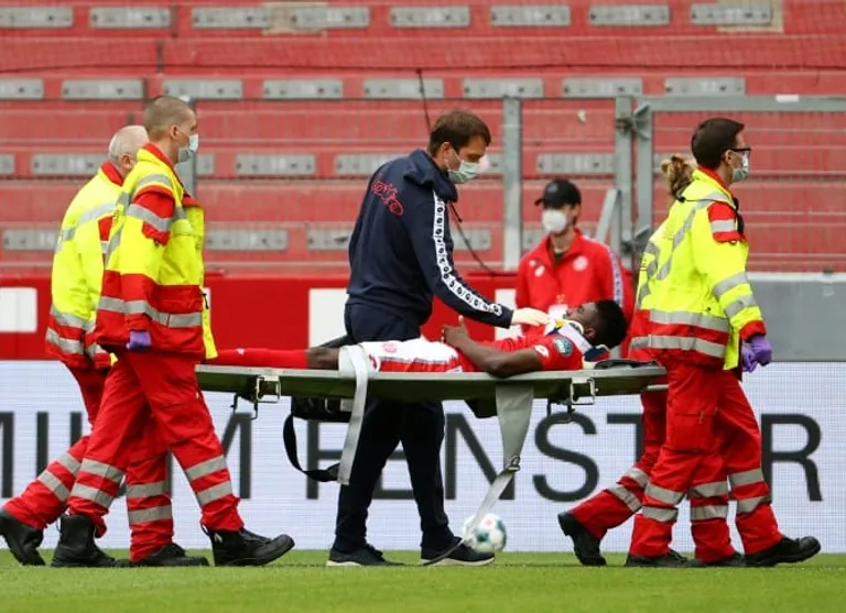 Liverpool loanee Awoniyi, 22, was left briefly motionless after landing awkwardly following an aerial collision with Augsburg defender Felix Uduokhai in the first half.