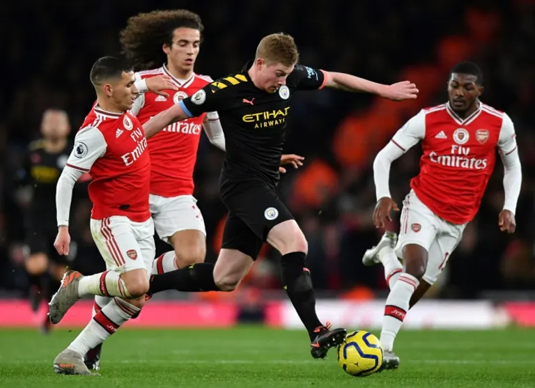 Kevin De Bruyne scored twice and teed up Raheem Sterling for City’s other goal as Arsenal crumbled to another humiliating home defeat.