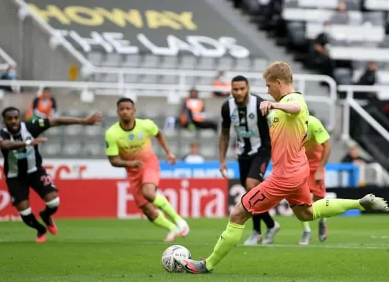 Kevin De Bruyne’s penalty and a stunning strike from Raheem Sterling got City back to winning ways on Tyneside after a 2-1 defeat at Chelsea in midweek crowned Liverpool Premier League champions for the first time in 30 years.