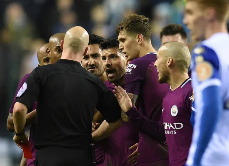 London (AFP) – Manchester City have been fined £50,000 ($68,000) for their players’ behaviour in the stormy FA Cup defeat against third tier Wigan.