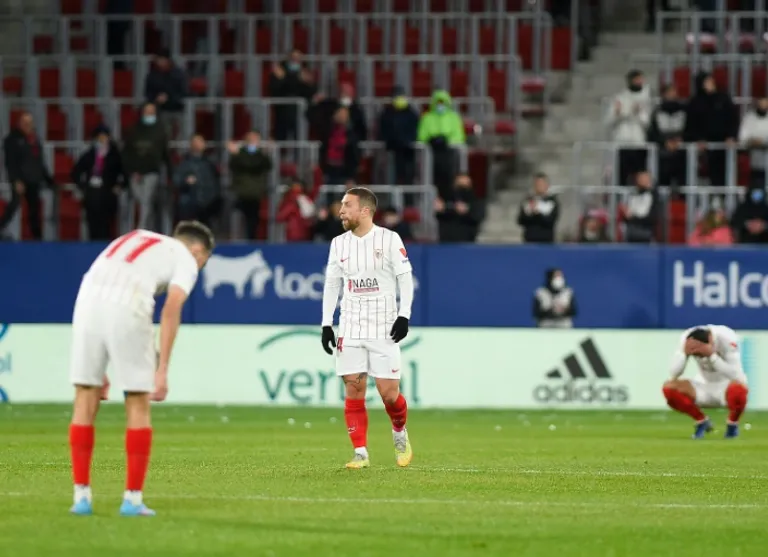 Sevilla were given a golden opportunity in injury-time to snatch victory at El Sadar but Ivan Rakitic missed a penalty, his shot well saved by the diving Sergio Herrera.